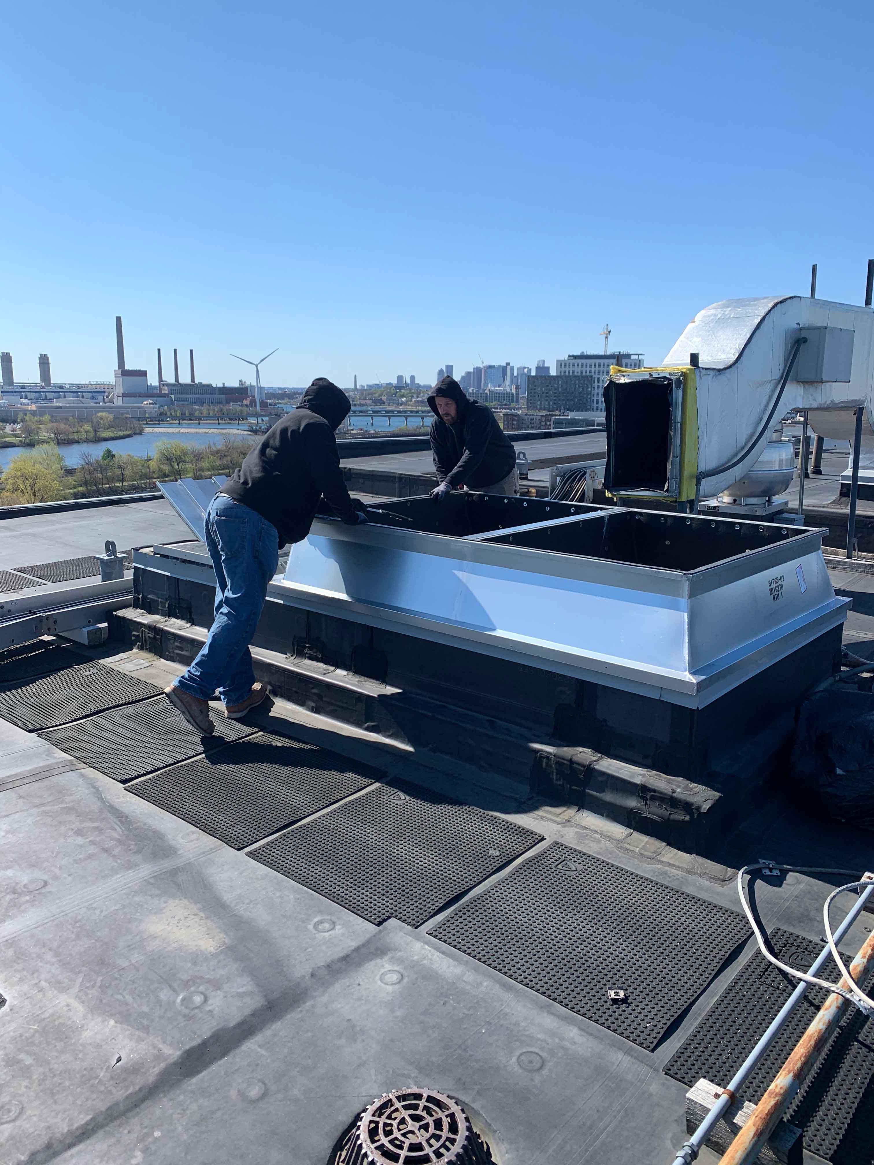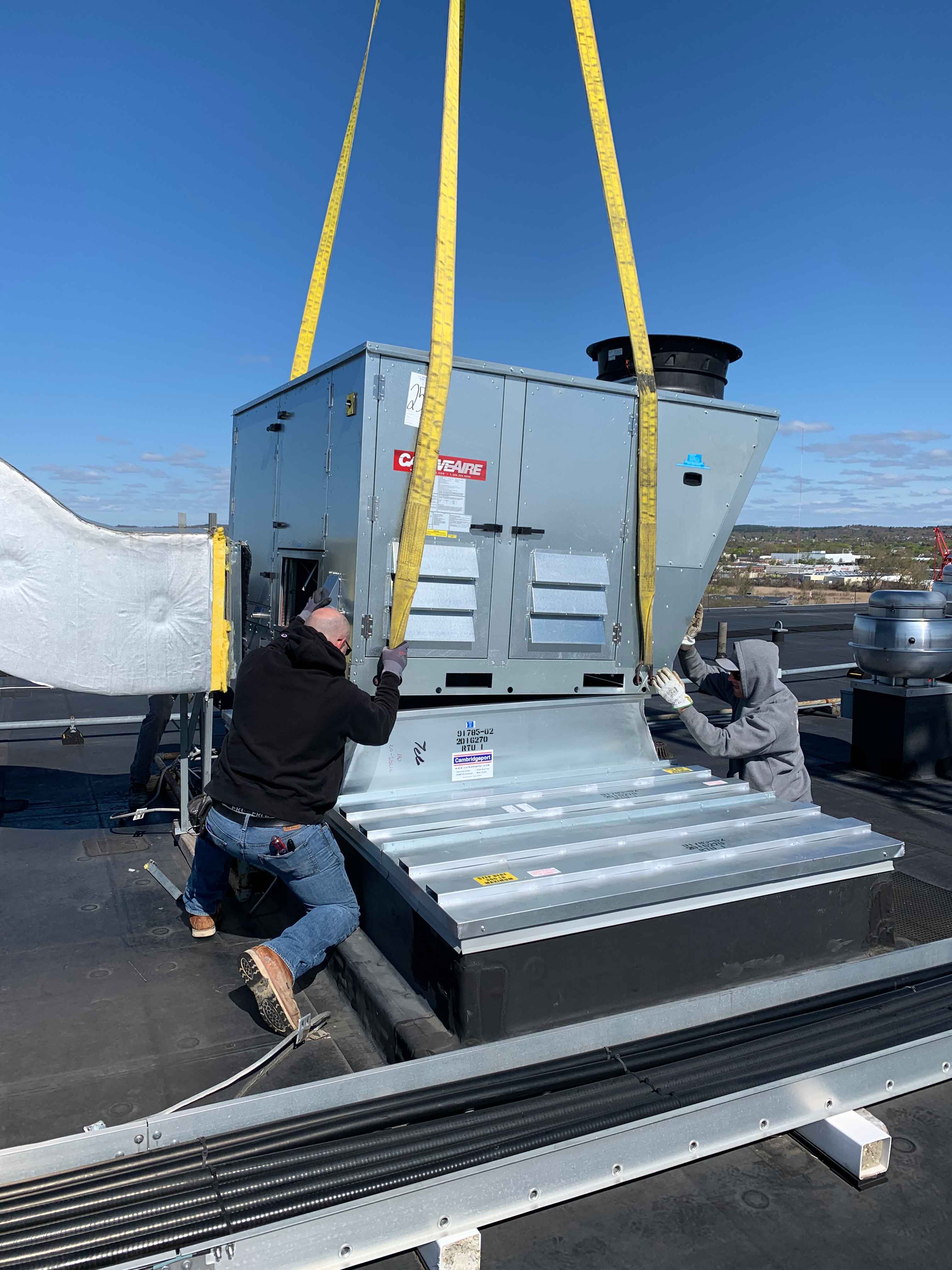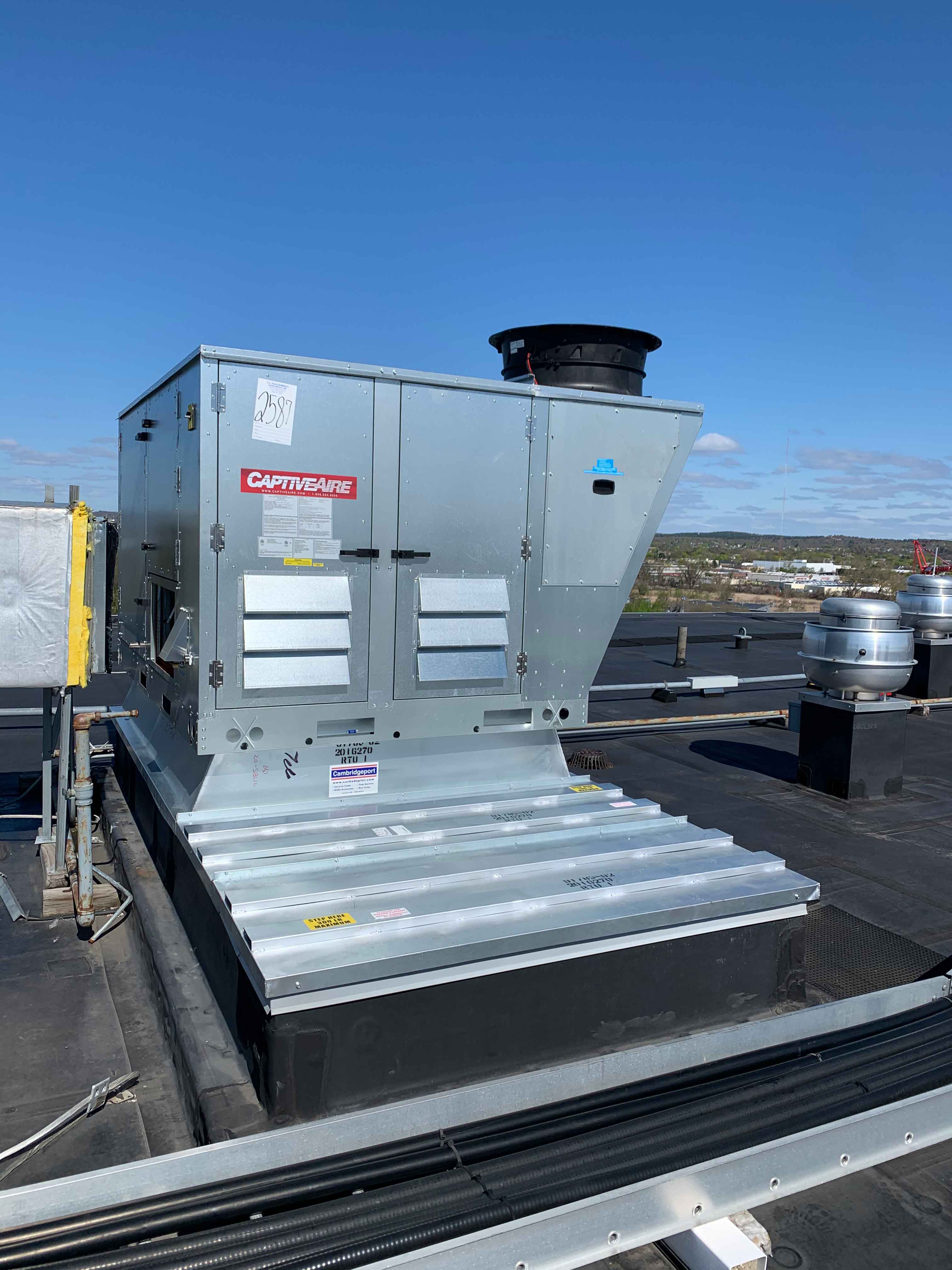 This project began with a field measure performed by one of our Cambridgeport technicians. Two custom curb adapters were designed and built based on the existing field dimensions, transitioning to the new RTU’s. The new adapters fit perfectly and allowed the existing side supply air duct work to line up with the new unit’s side supply configuration. Another satisfied customer!