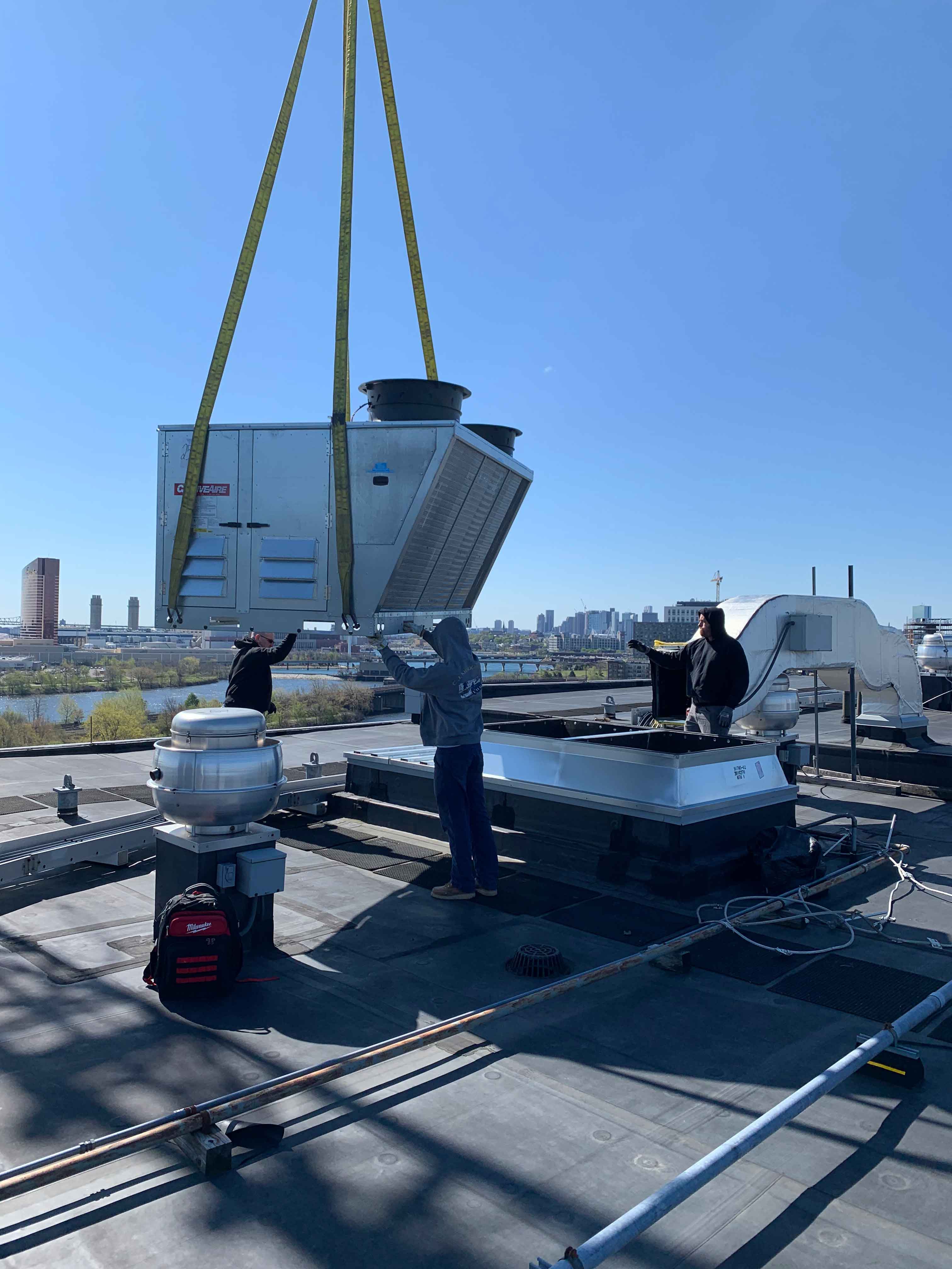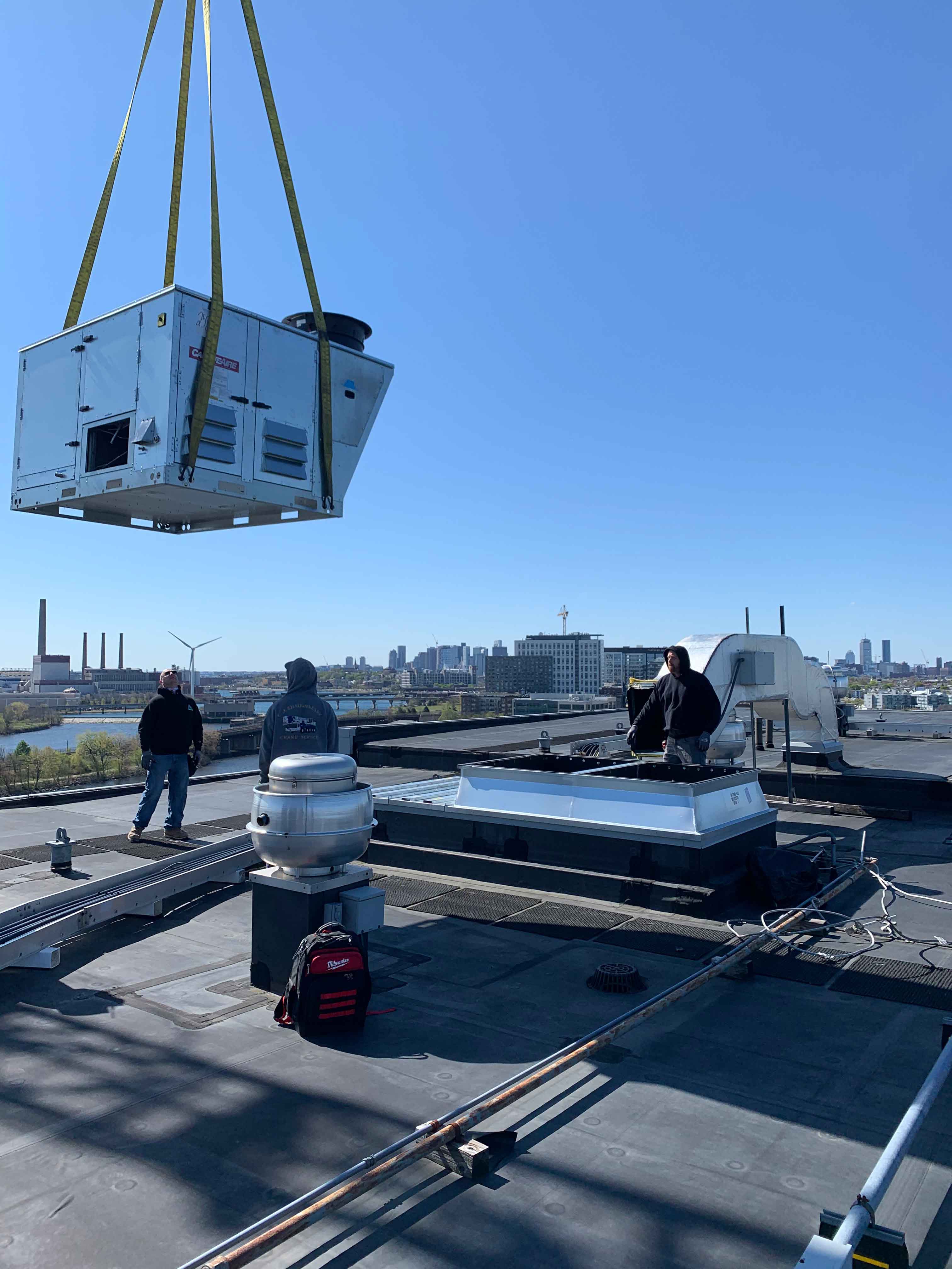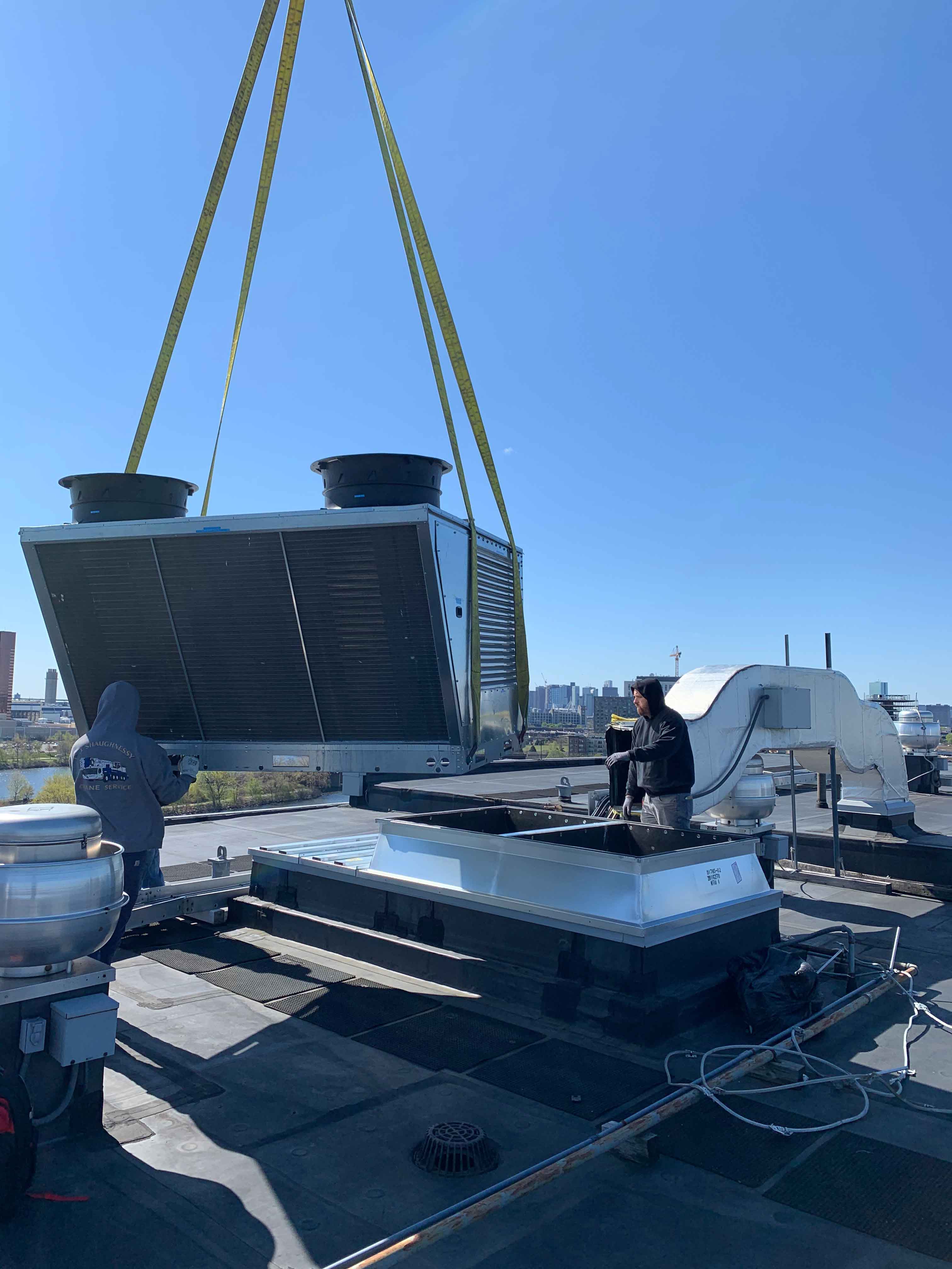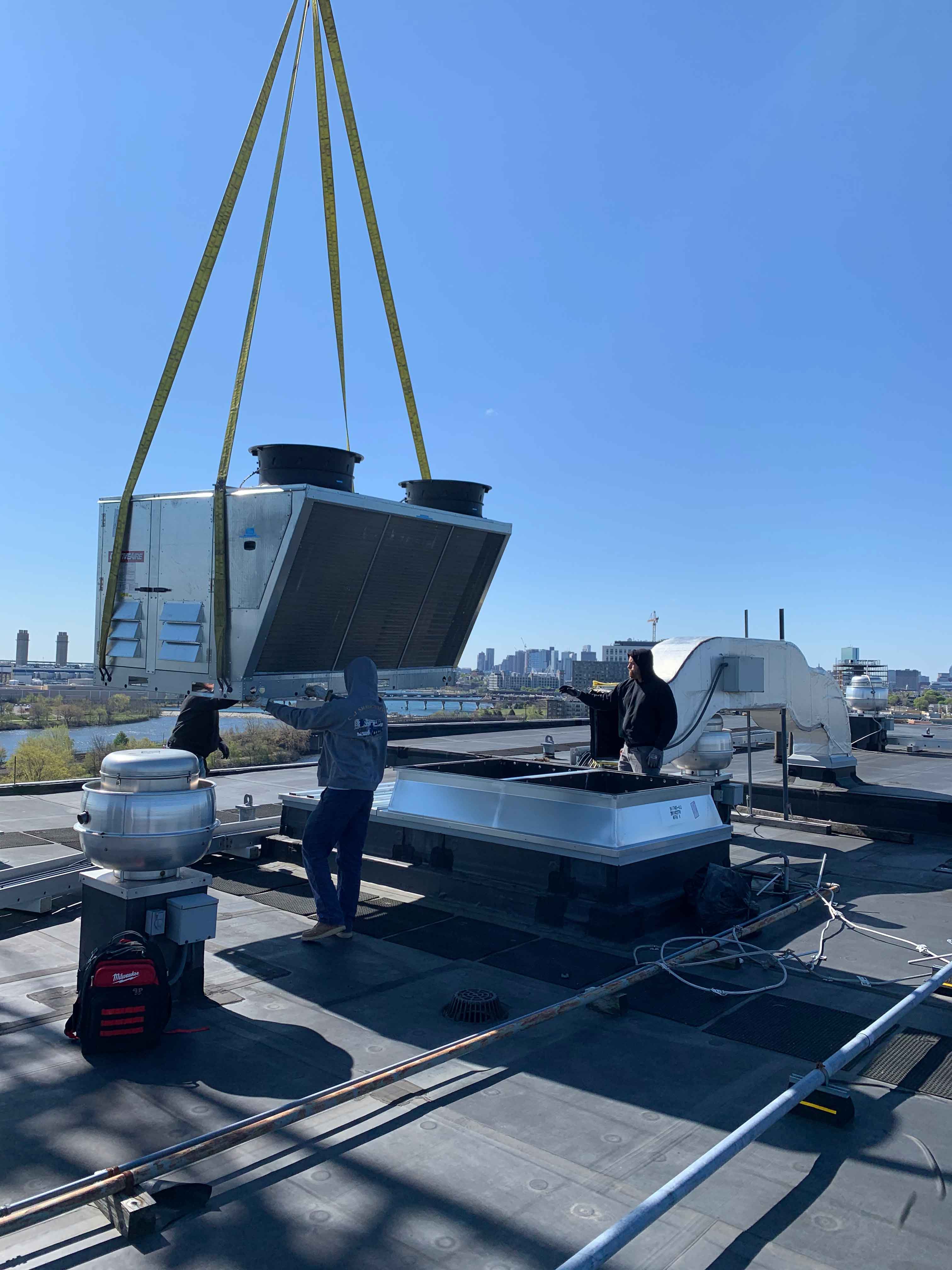 This project began with a field measure performed by one of our Cambridgeport technicians. Two custom curb adapters were designed and built based on the existing field dimensions, transitioning to the new RTU’s. The new adapters fit perfectly and allowed the existing side supply air duct work to line up with the new unit’s side supply configuration. Another satisfied customer!