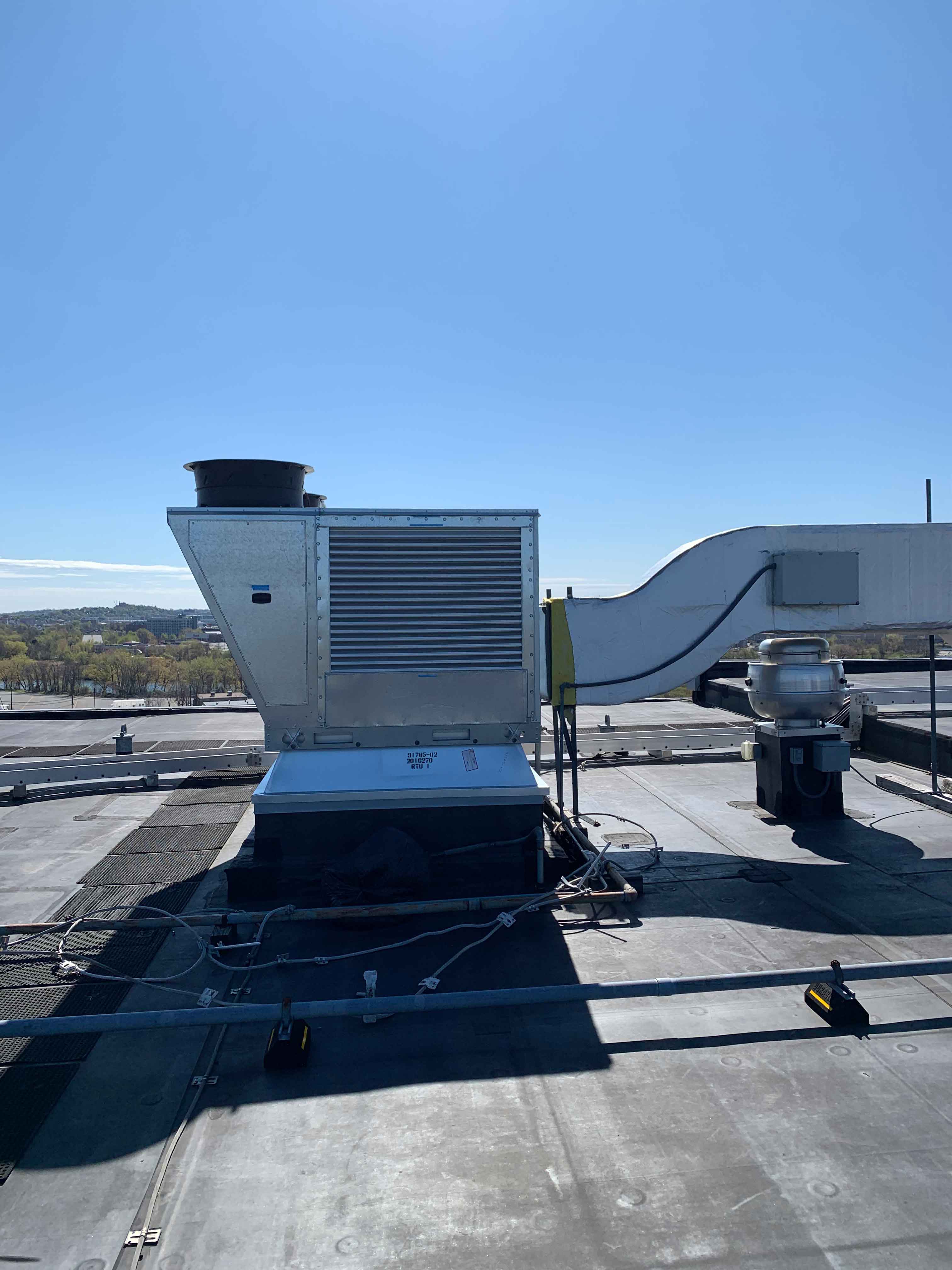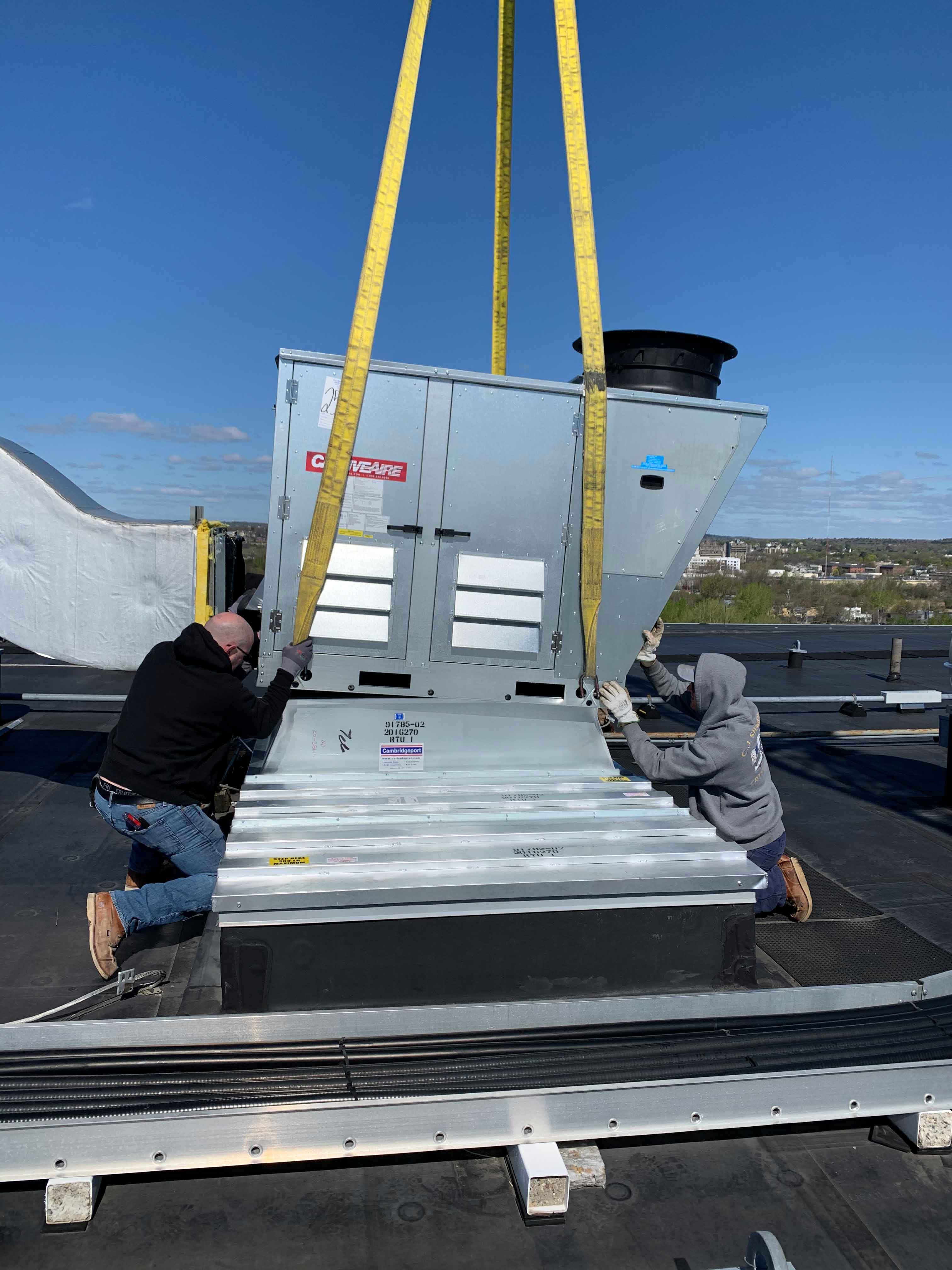 Rooftop HVAC Unit Installed on a Curb Adapter
